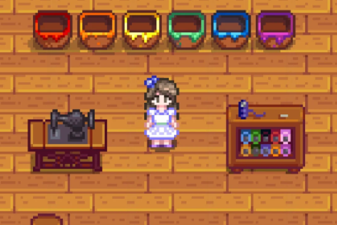 材料备齐后,需要前往艾米丽家的缝纫机进行制作。首次使用缝纫机需要先与艾米丽建立友谊并获得许可。将布料放入缝纫机左侧槽位,右侧放入对应材料:恐龙蛋用于制作帽子,恐龙蛋黄酱用于制作裤子。缝纫界面会实时显示成品预览,确认无误后即可完成制作。注意布料可以通过纺织机加工动物毛获得,绵羊和兔子都是稳定的毛料来源。