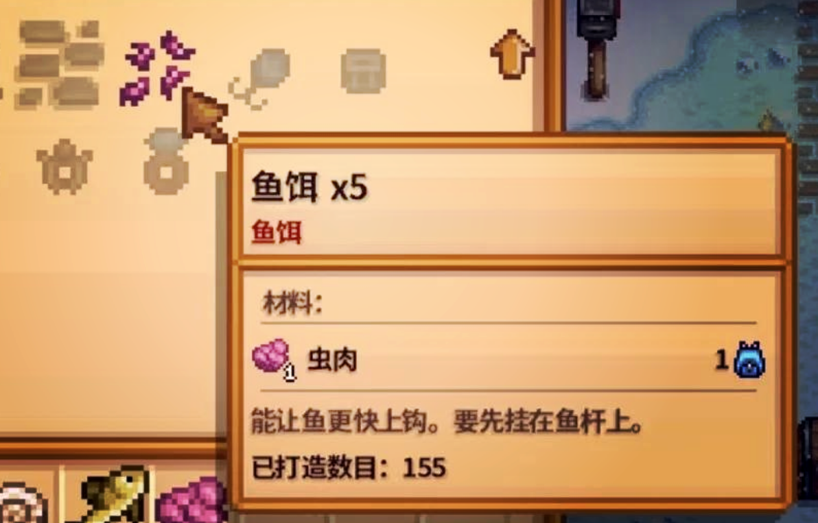 鱼饵可以通过击败洞穴中的虫子获得虫肉后制作,也能在渔具店直接购买。钓具则需要通过钓鱼等级提升后解锁配方,或者参与游戏内的特殊活动获取。比如冰雪节奖励的倒刺钩、精装旋式鱼饵等,都能显著提升钓鱼体验。需鱼饵和钓具都是消耗品,每次钓鱼都会减少耐久度,用完后需要重新补充。