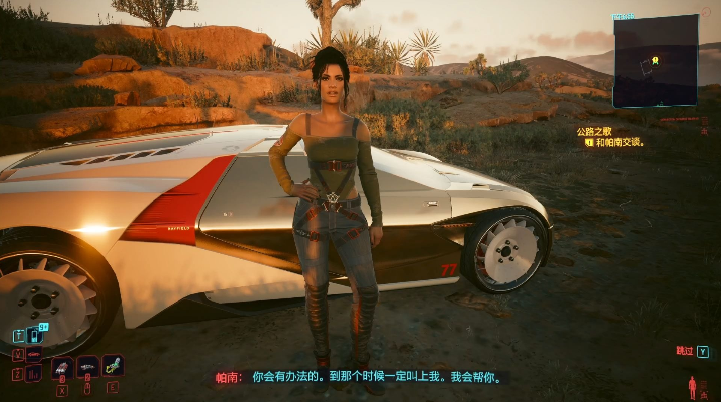 营地的功能性体现在载具改装与支线任务承接。流浪者开局角色拥有专属的赛车改装机会,并能通过营地任务获取特殊载具如红色野狼。部分支线如冲破风暴和举手之劳需在营地与帕南互动触发,这些任务会影响结局走向及阵营关系。