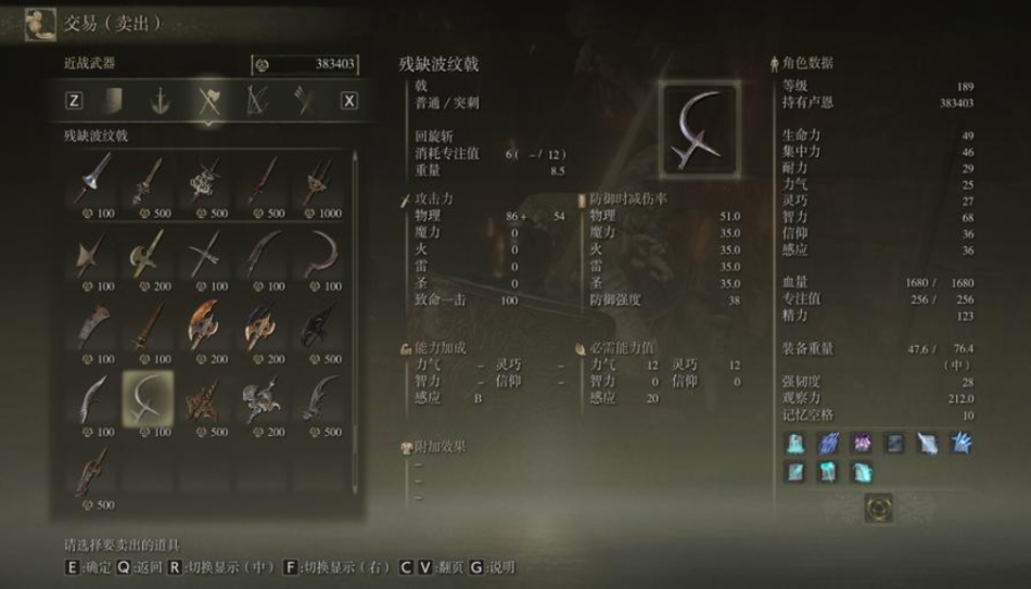到了189级,你的灵巧必须优先堆到50这是打刀类武器的灵魂补正,伤害提升非常明显。力量可以补到40点,既能满足大多数力敏武器的需求,又能提高物理输出的稳定性。血量千万别抠门,35点是基础线,否则后期BOSS随便摸你两下就得读档。耐力和集中力根据装备来调整,穿重甲的话耐力至少25点,如果想频繁放战技,集中力15-20点够用。