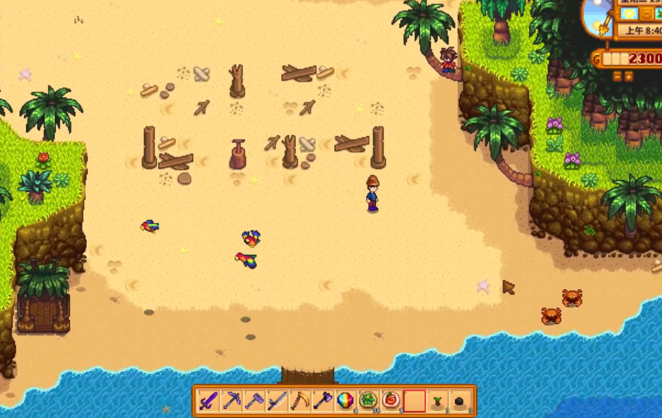 到了姜岛先别急着乱跑,岛上很多东西都要金核桃才能解锁。刚开始最好先攒20个金核桃把农舍修好,这样就能在岛上过夜了。金核桃可以通过解谜、挖矿、钓鱼或者完成岛上的小任务拿到。比如宝石鸟任务,每次下雨时岛上会随机出现一只宝石鸟,靠近它就会掉宝石,把四种宝石集齐献给神社能换5个金核桃。岛上还有个火山矿洞,记得带水壶去浇灭岩浆开路。矿洞第10层有锻造台,能给工具升级。如果想快速回家,可以用回城法杖或者回家图腾。姜岛和主岛的天气不一样,可以用雨水图腾让岛上下雨触发特殊事件。
