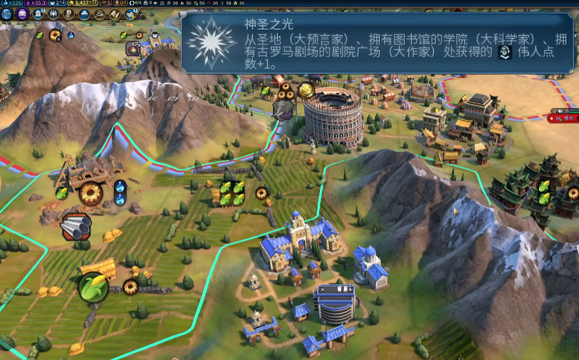 最受推崇且泛用性极强的万神殿选择是收获女神。该效果能让你在砍伐树木、清除雨林或收割各类资源时获得等同于这些单元格所提供生产力或金币数值的信仰值。对于巴比伦而言,早期通过建造者密集改良地块以触发采矿等尤里卡是常规操作,收获女神能将这一过程产生的损耗转化为大量信仰储备。这些信仰值在古典时期若配合雄伟壮丽类黄金时代加成,可以极高折扣购买建造者与移民,极大节省生产力,或将信仰直接用于购买单位、抢购伟人,其灵活性无与伦比,能为你提供巨额的额外生产力收益,无论走向何种胜利路线都是极其强大的助力。
