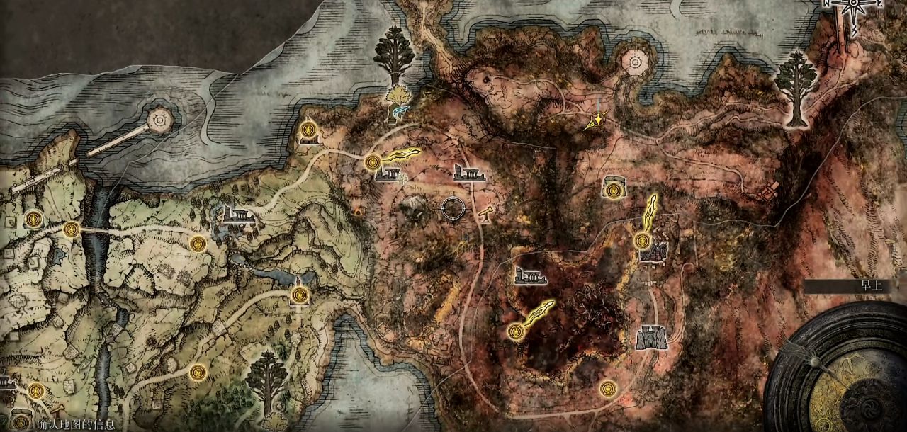 推进至巨人山顶后,进入索尔城击败BOSS老将尼奥,沿城墙楼梯向上可拾取圣树秘密符节(左),集齐左右两半符节后,返回洛德大升降机,进入电梯并选择互动选项“举起秘密符节”,即可前往化圣雪原。在化圣雪原的离教废屋附近,找到女巨人并互动,装备并召唤白金之子勒缇娜骨灰,可获得强化材料古龙岩失色锻造石。